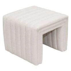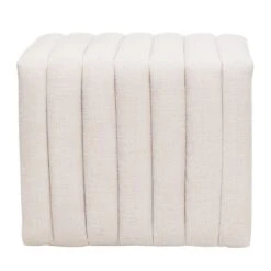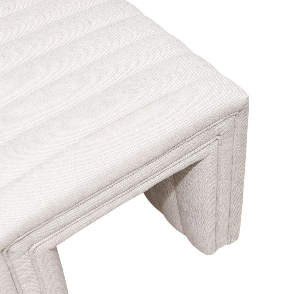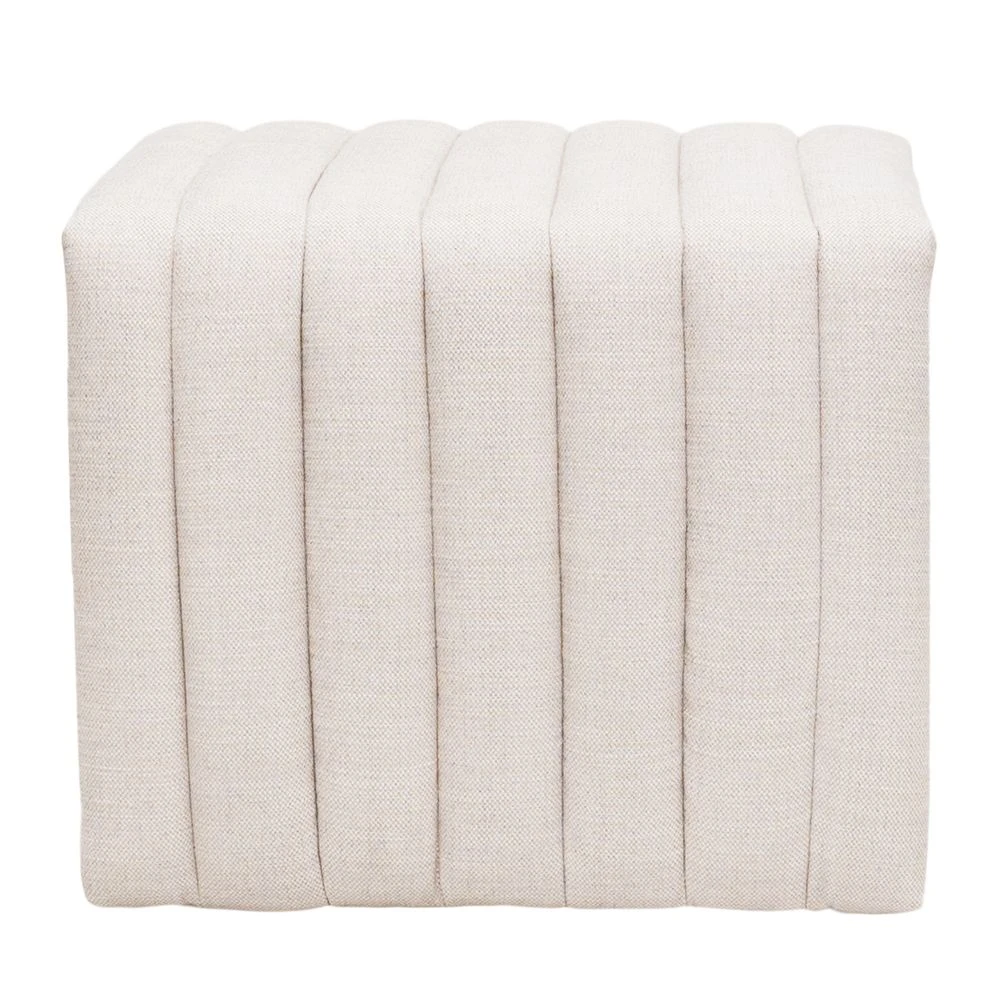 Tailored and elegant, the Savoy stool is upholstered in a natural linen blend fabric and features deep channel stitching and self-piping detail. Infusing interiors with a distinct sense of modernity, the Savoy natural linen stool is perfect for adding instant drama and texture to your bedroom or living room space. Also available in off white and taupe shearling.