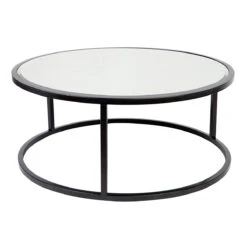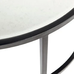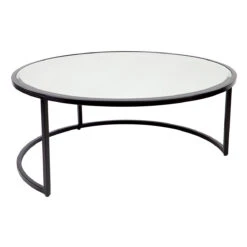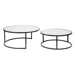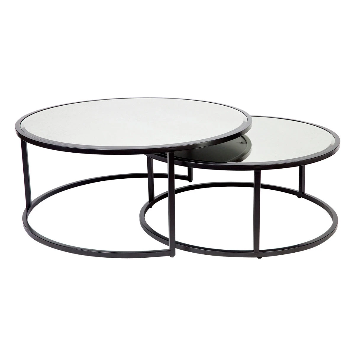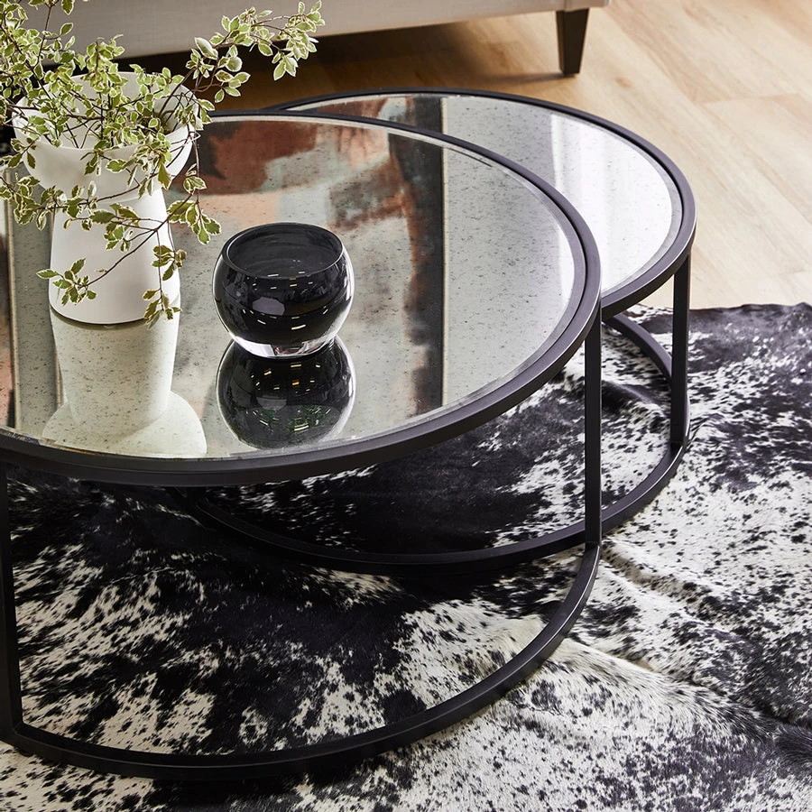 This beautifully adaptable nest of two coffee table set has been finished with a powder coated finished frame and inlaid antique mirror tabletops. The fantastic nesting ability allows for a practical and versatile living piece.