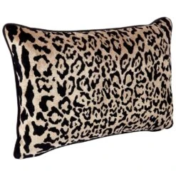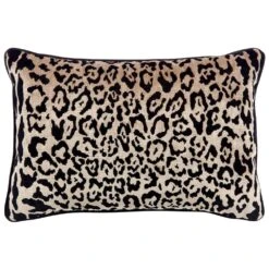 Adding swoon worthy pattern and personality, the Serene rectangle feather cushion in quality woven leopard chenille velvet offers a striking alternative to plain coloured neutrals. Never really out of fashion, the trend towards animal prints has exploded and looks to be going nowhere. Delivering on the energy of warm, exotic locations, this elegant cushion provides a perfect accent piece or offers a grounding ‘nature neutral’ alternative to solid neutrals when repeated and combined with an eclectic mix of patterns, colours and textures. Complimented by a black velvet back and piping, the Serene comes complete with a plump feather filled cushion insert. Pair with its square partner, the matching Candace stool or Hills 3 seater sofa for the ultimate swoon worth interior.