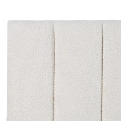 A beautiful complement to any interior, the Soho double bedhead features detailed panelling upholstered in a gorgeous white boucle. Making a striking statement as a sophisticated centrepiece to any bedroom setting, the Soho double bedhead is classic contemporary in design, visually softening your space with its tactile fabric and vertical tufting. Constructed from wood it enjoys quality craftmanship with the upholstered panelling continuing all the way to the floor. Pair the Soho queen bedhead with the matching Curve bench ottoman for the ultimate in tailored interiors.