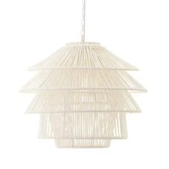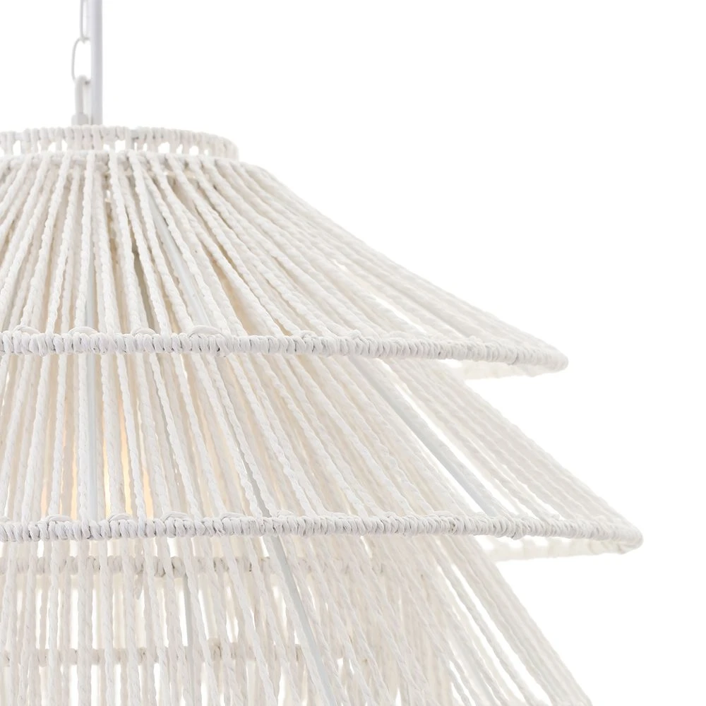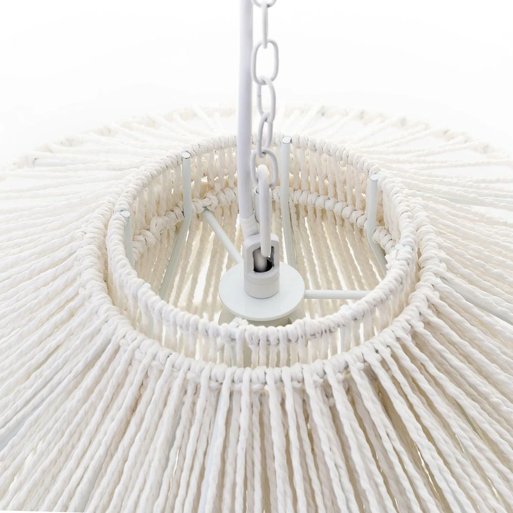 Distinct tropical vibes emanate from the gorgeous Solana rope pendant. Featuring a sculptural 5 layered skirt hand woven with white paper rope around a white iron frame, the Solana rope pendant enjoys a relaxed textural quality which effortlessly injects stylish interiors with tranquil artisan soul.