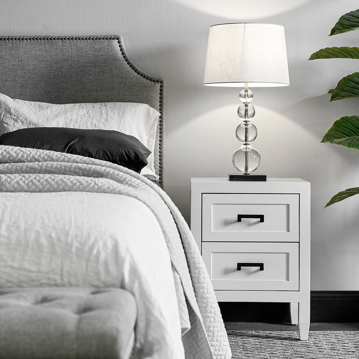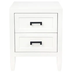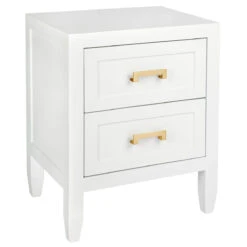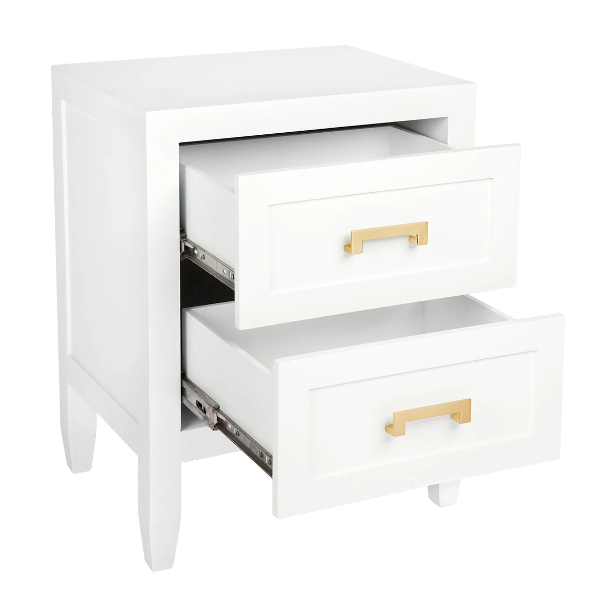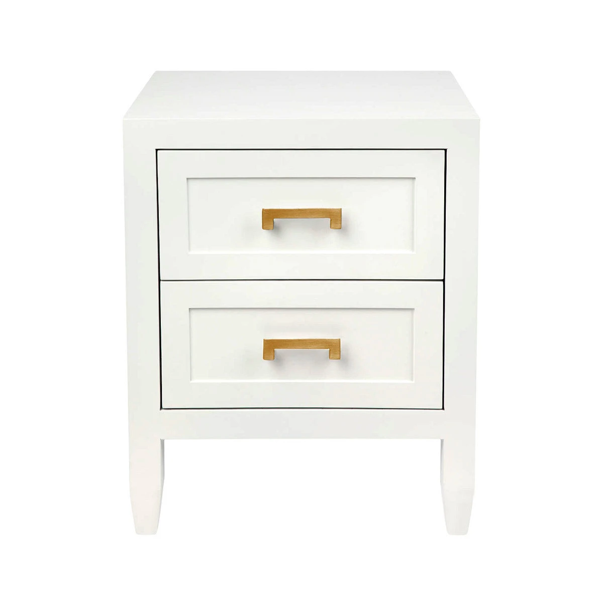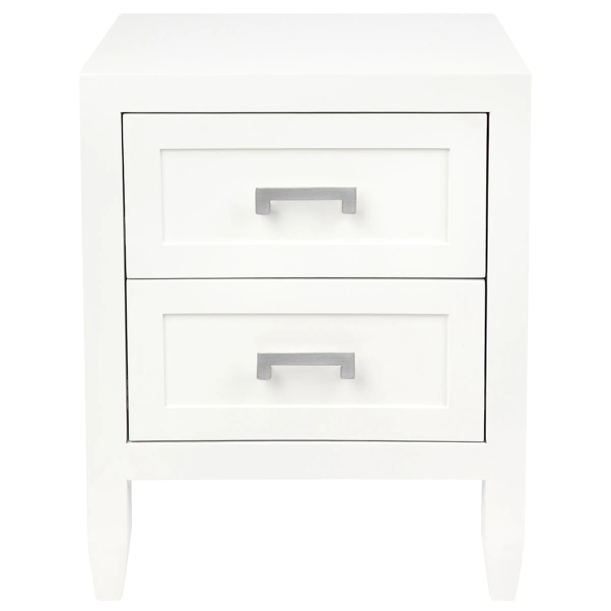Clean contemporary lines are furnished with a touch of classic shaker panelling and an elegant satin white painted finish on our Soloman bedside table. Two generously sized drawers are complimented with hardware options in brushed silver, brushed brass or black powder coated handles allowing the Soloman range to slip seamlessly into a variety of interior styles. Differing size options allow this collection to transition between larger and smaller spaces.