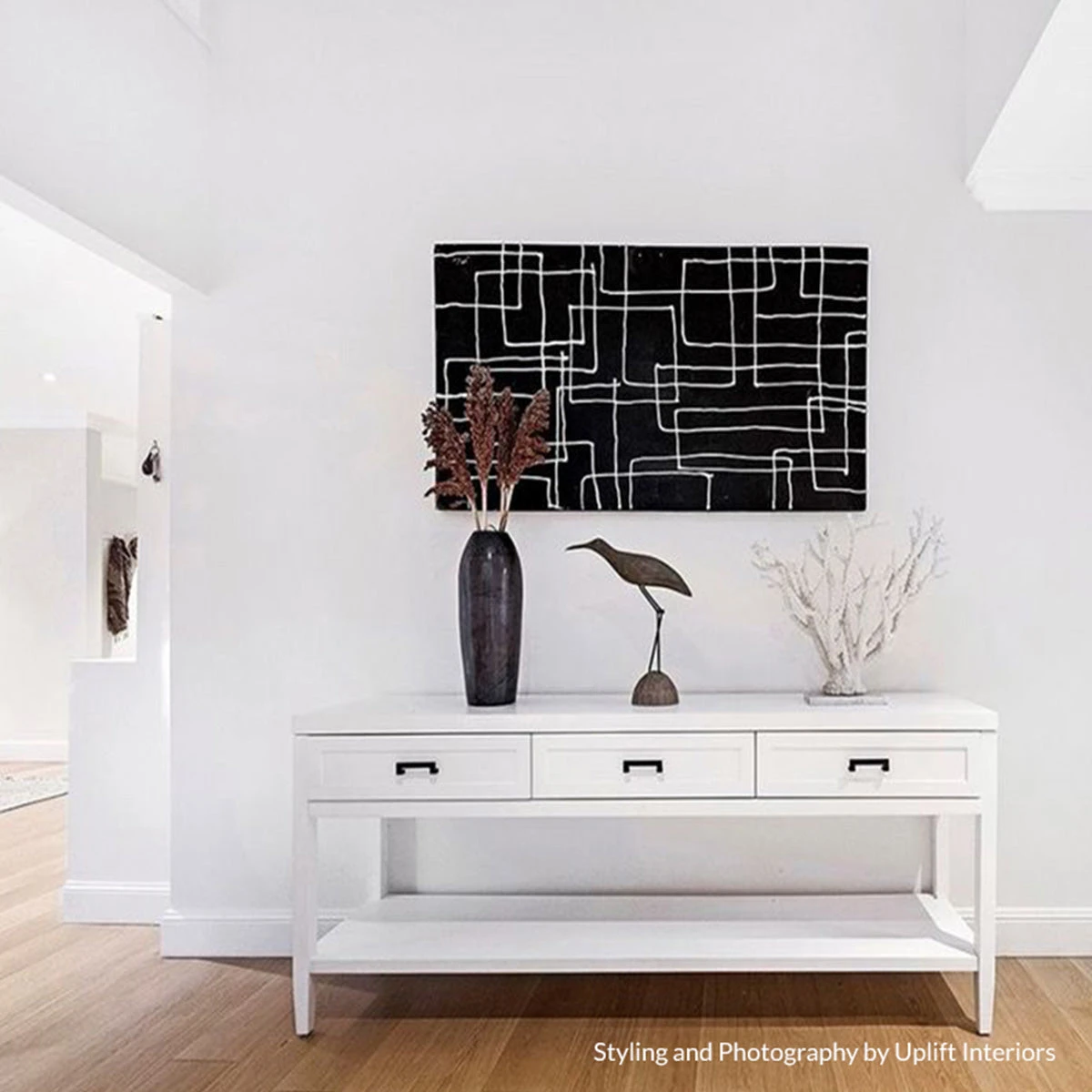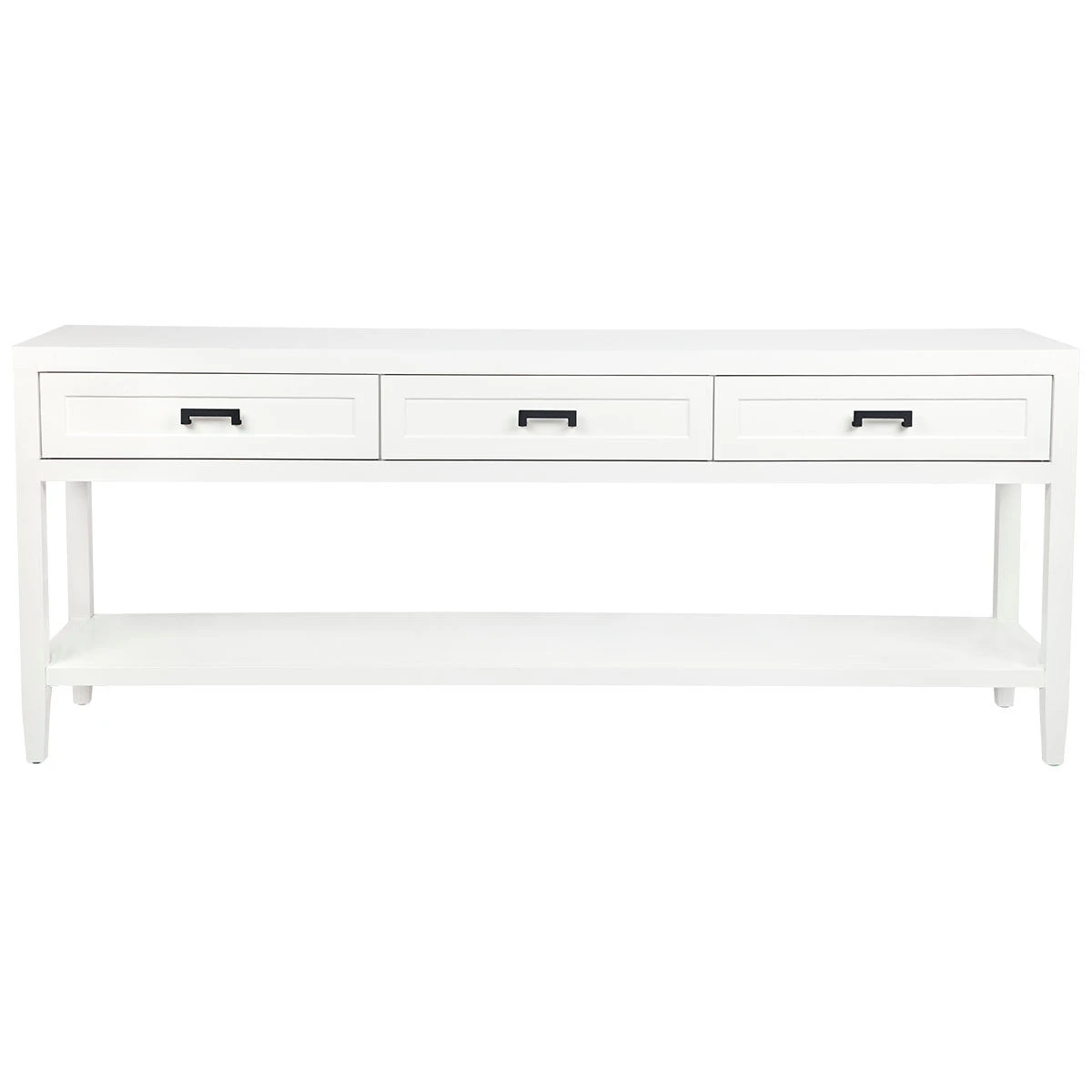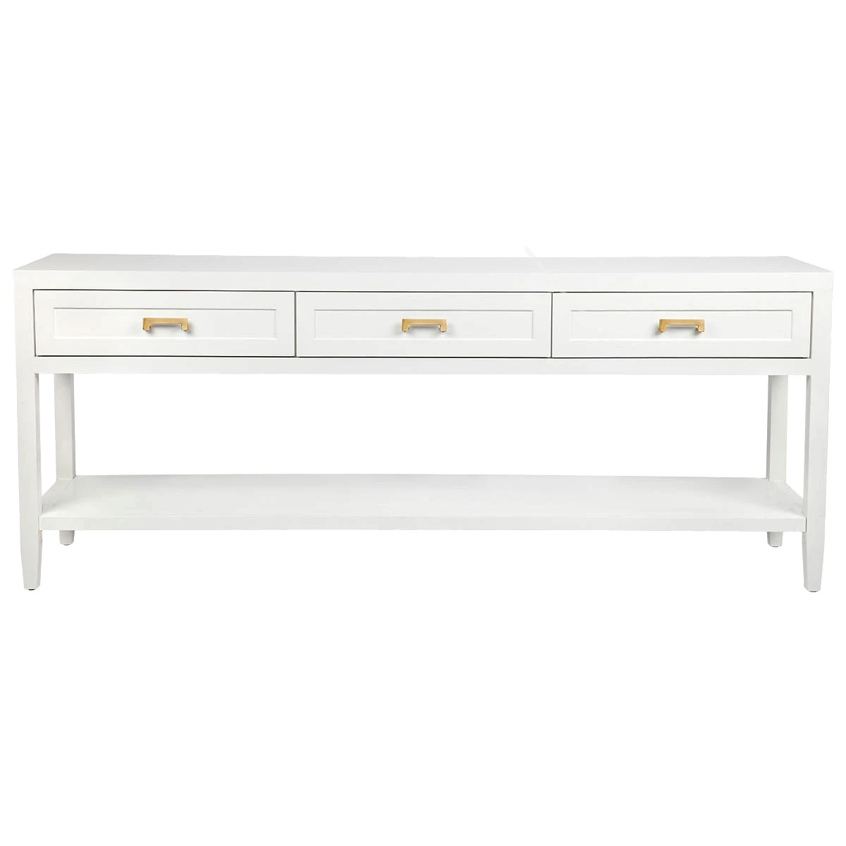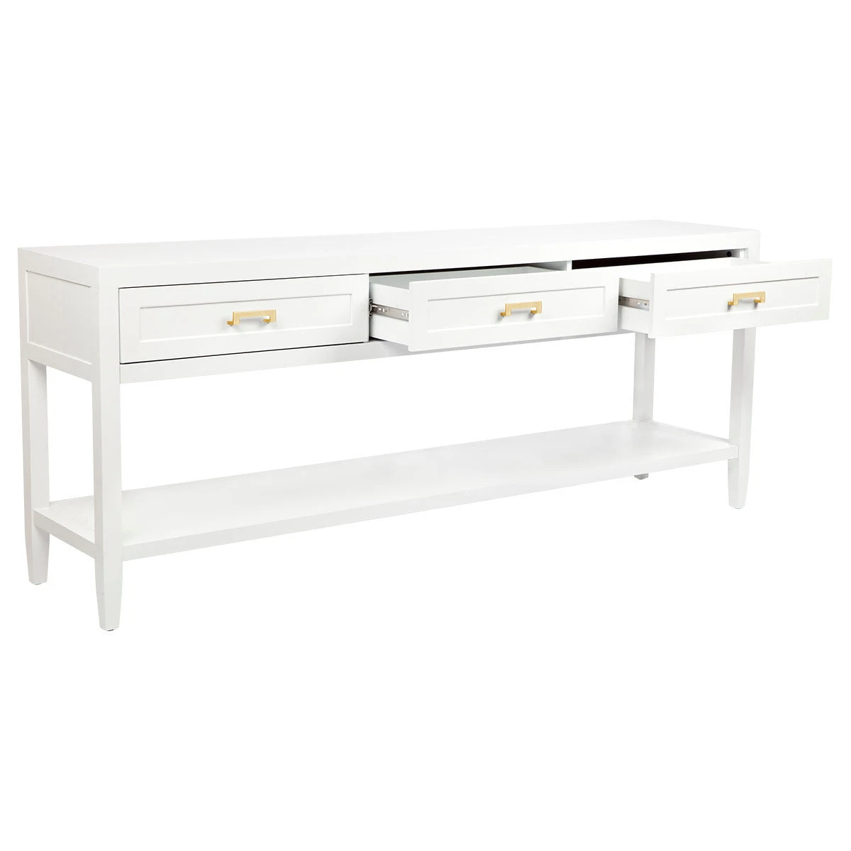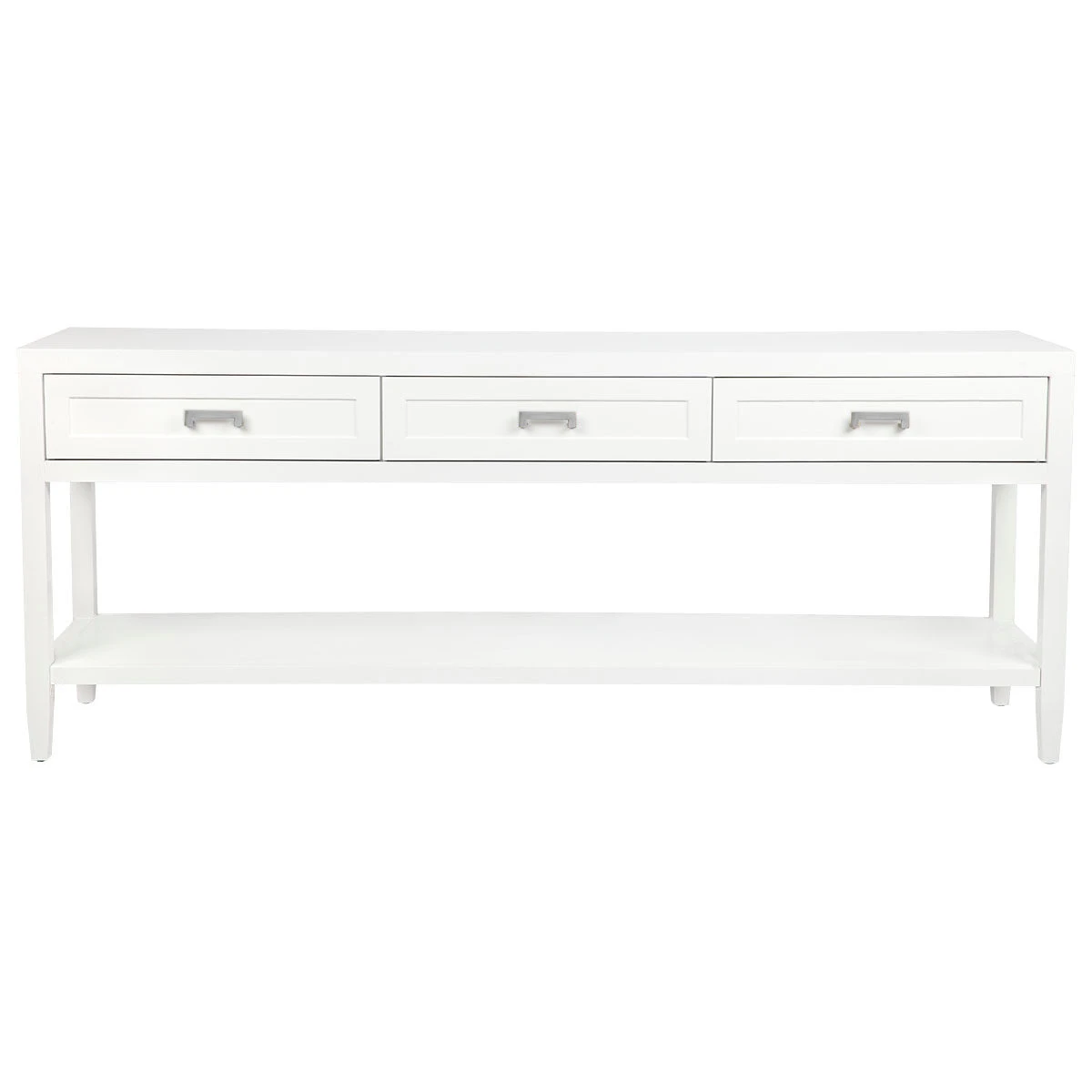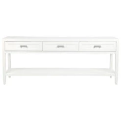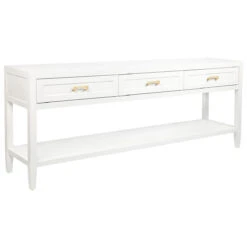 Clean contemporary lines are furnished with a touch of classic shaker drawer panelling and an elegant satin white painted finish on our Soloman console table. Complimented with several hardware options in brushed silver, brushed brass or black powdercoated handles, the Soloman furniture pieces slip seamlessly into a variety of interior styles. Differing size options available in the console table allow this collection to transition between larger and smaller living spaces.