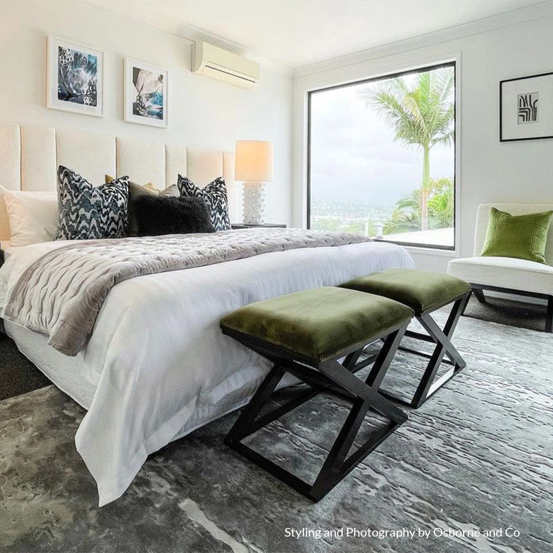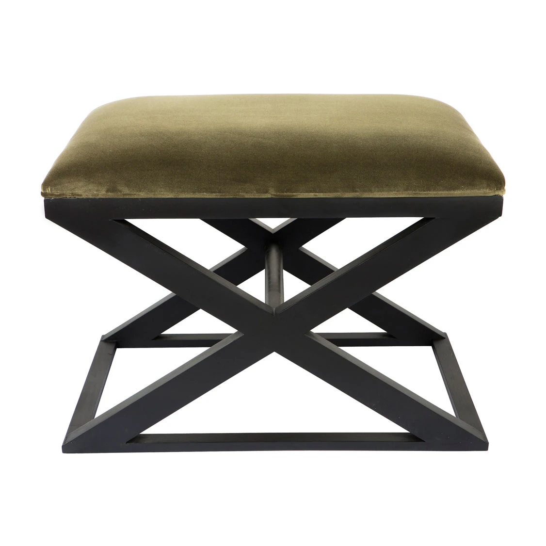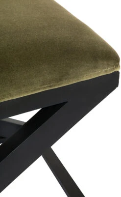 A stylish cross legged timber frame in a smooth black finish provides a classic base for the Spencer black timber stool. Its aptly cushioned top is upholstered in a gorgeous moss coloured velvet. A truly versatile piece, the Spencer black timber stool can be used as a footrest, seat, or side table offering timeless appeal. Also, available in black, teal or natural, the possibilities for chic interiors are endless.