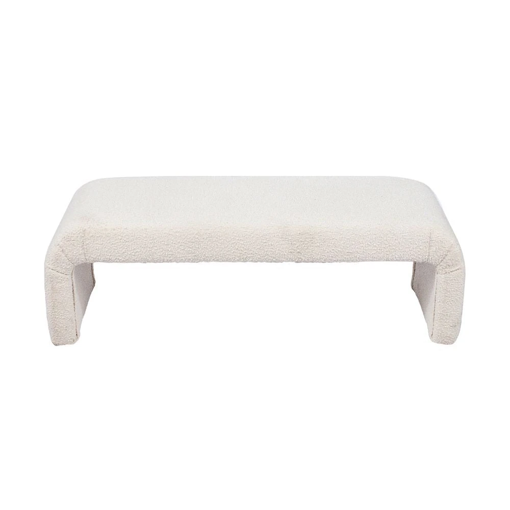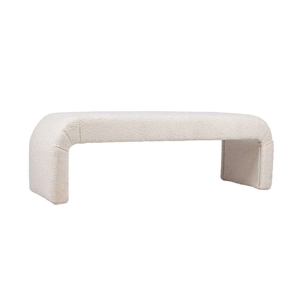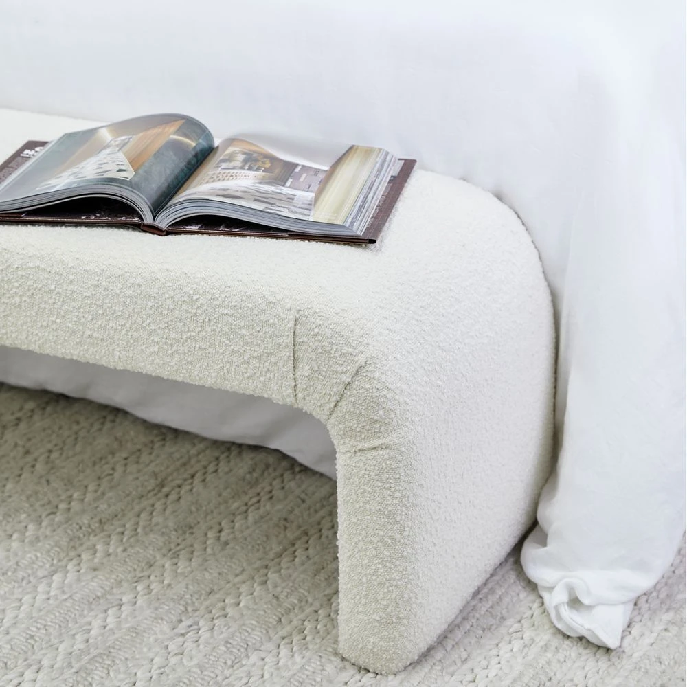 Inspired by the on-going trend for all things curved, The Curve bench ottoman is a striking furniture piece with sensuous curves upholstered in a gorgeous white boucle. Elevating modern interiors with its gorgeous texture and bold, sculptural form, The Curve bench ottoman is constructed from a sturdy wooden frame with webbing, springs and ample foam cushioning – ensuring comfort while delivering undeniable style.