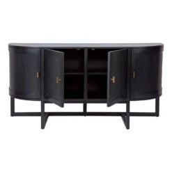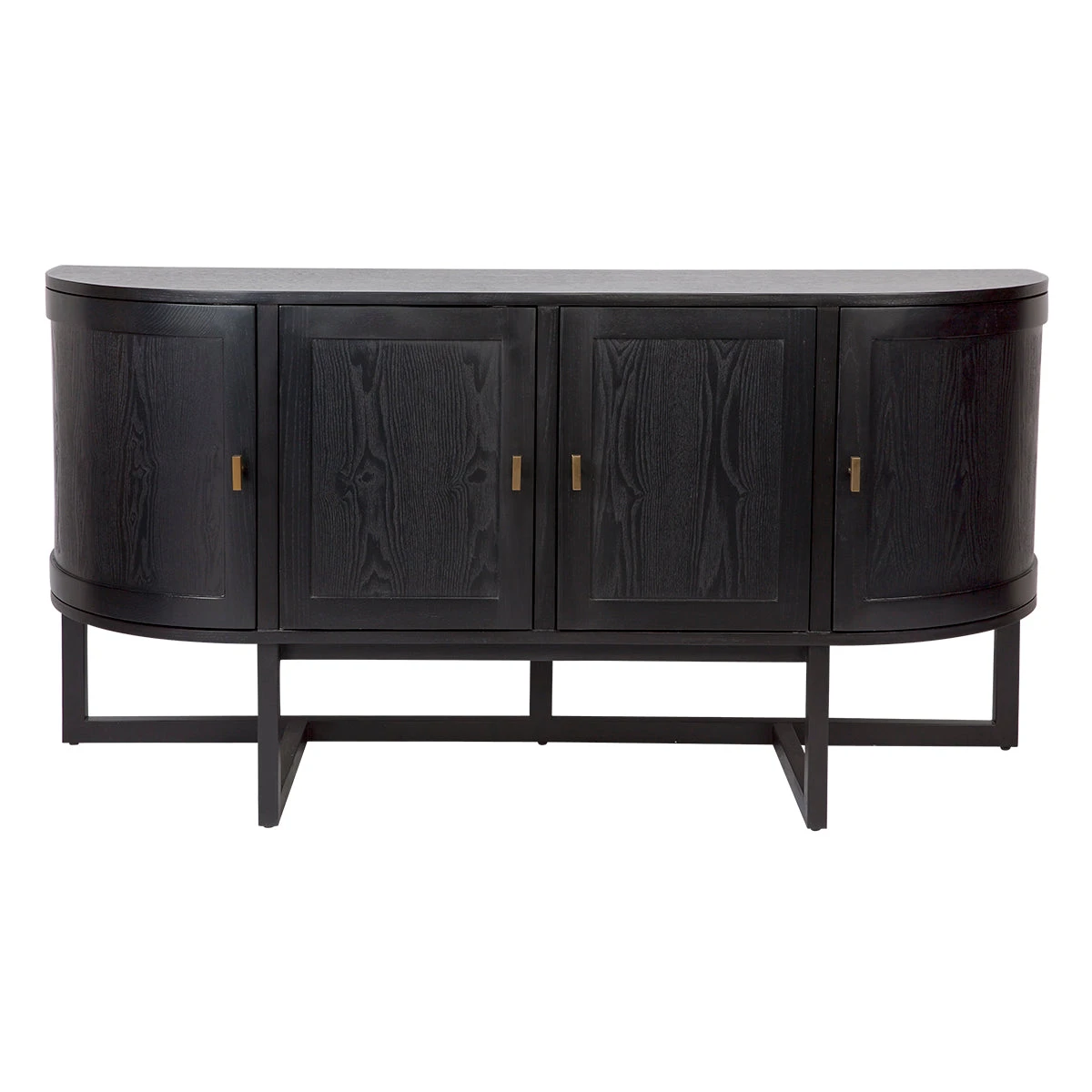 Lust worthy details have us completely enamoured with this stunning demilune design. Offering storage with style, our handsome Theodore buffet is the perfect addition to any modern dining, living room or entryway. Featuring a unique curved silhouette crafted from beautifully grained oak veneer which sits atop a clean-lined interlocking base and sleek brushed gold hardware, that adds a refined touch. Truly an heirloom piece that transcends across any interior style.