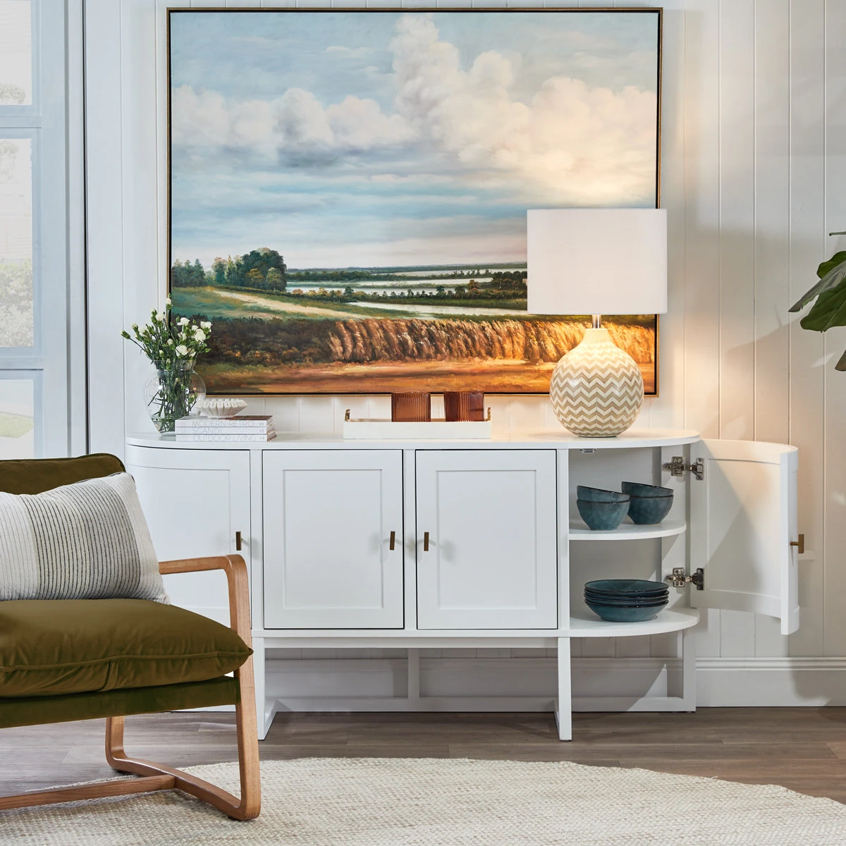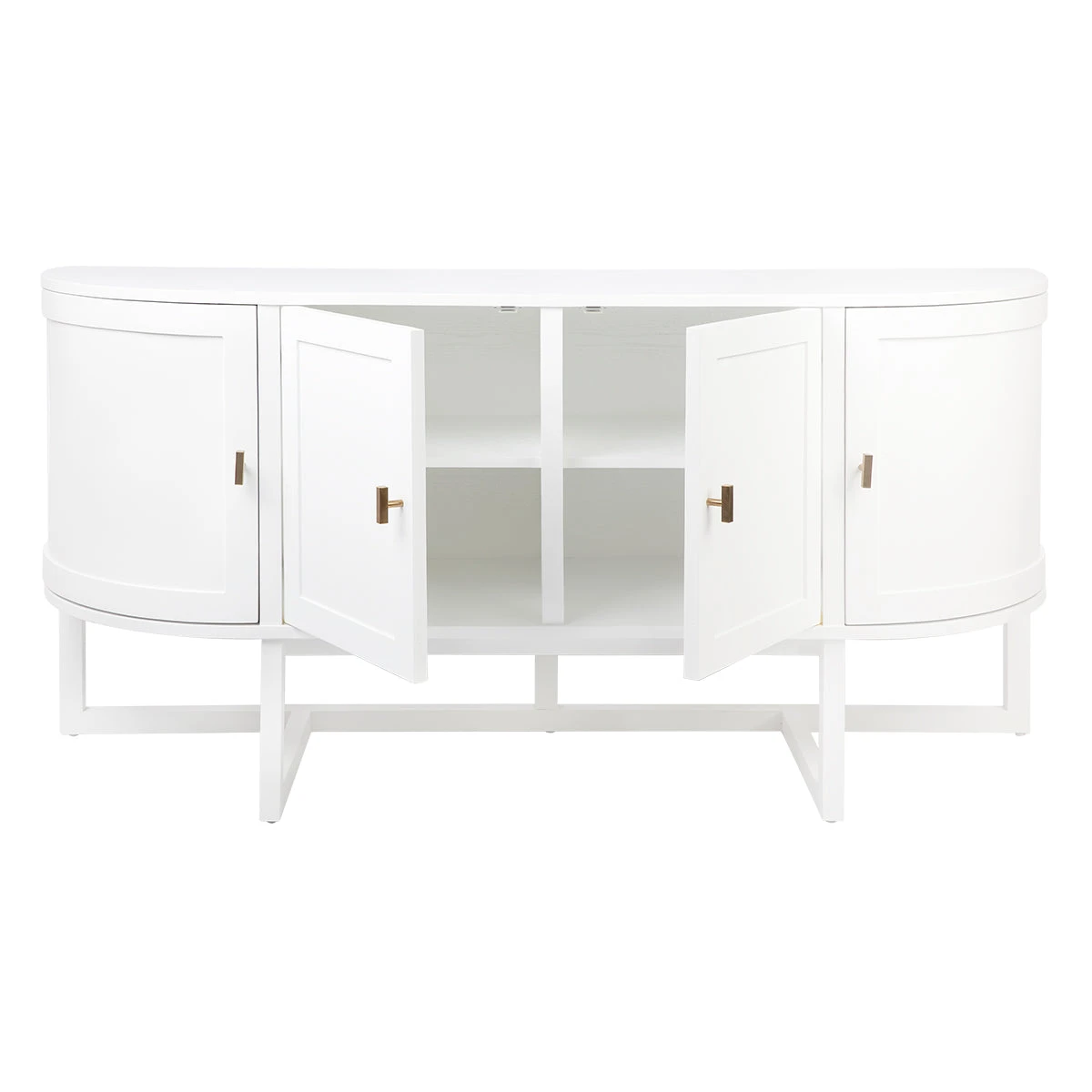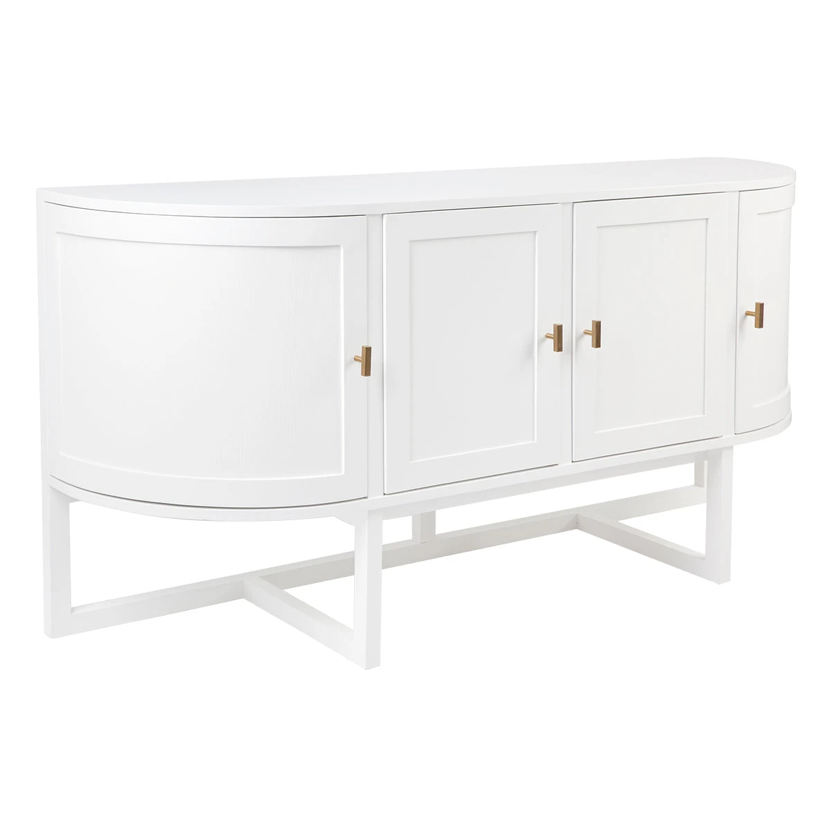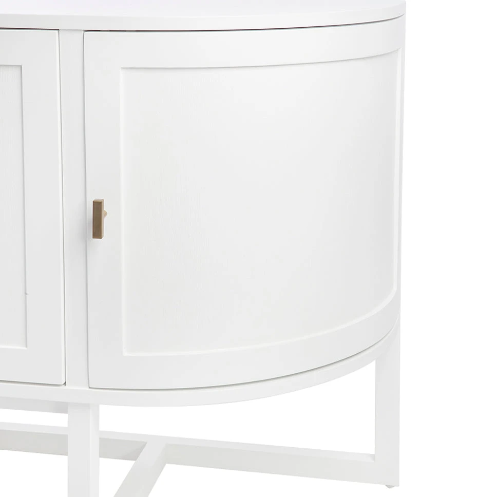 Lust worthy details have us completely enamoured with this stunning demilune design. Offering storage with style, our handsome Theodore buffet is the perfect addition to any modern dining, living room or entryway. Featuring a unique curved silhouette crafted from beautifully grained oak veneer which sits atop a clean-lined interlocking base and sleek brushed gold hardware, that adds a refined touch. Truly an heirloom piece that transcends across any interior style.