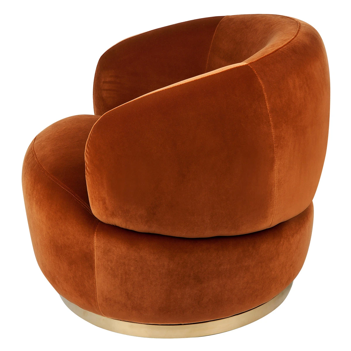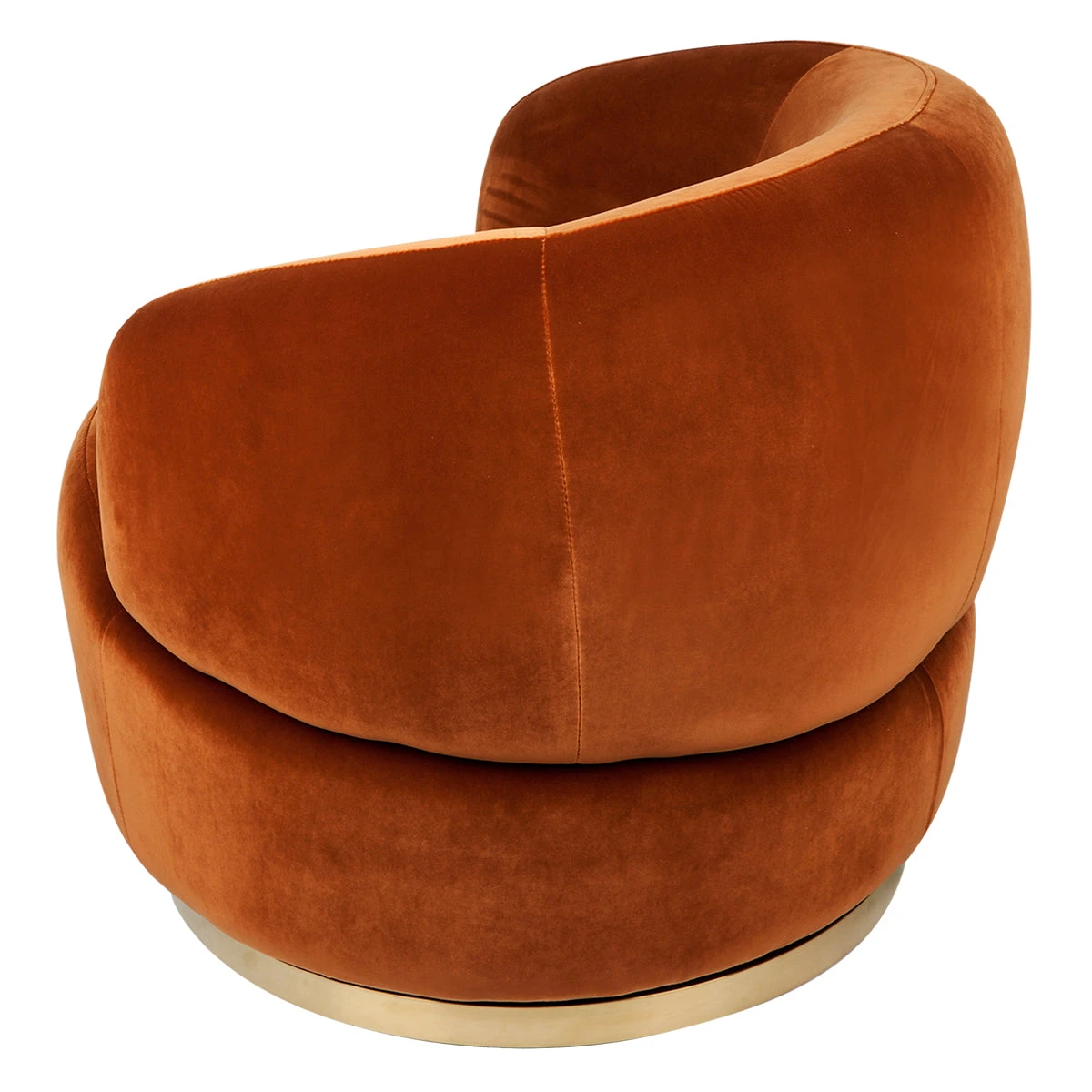 The epitome of luxury upholstered in rich, plush Caramel velvet the Tubby Swivel Arm Chair airs a refined sophistication with it`s practical swivel action finished in antique brass.
