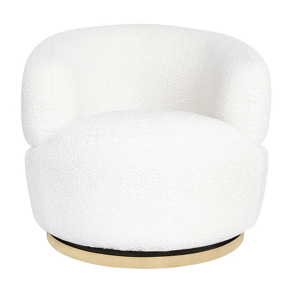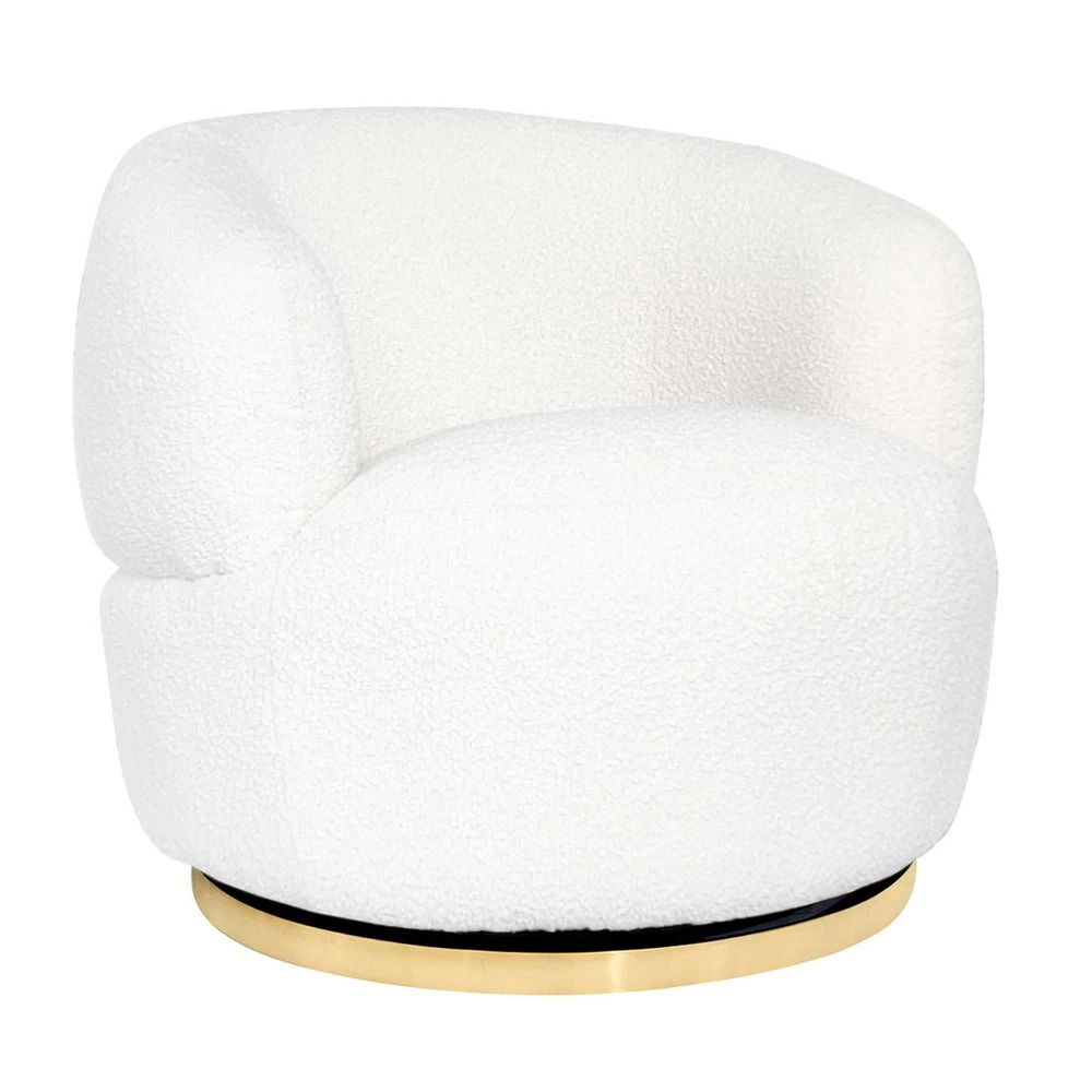 Tubby offers the ultimate in curve appeal. Its comfortable embrace is only matched by its refined tailoring and practical swivel action encased in an elegant antique brass finished plinth. Upholstered in plush ivory boucle, the Tubby swivel arm chair airs a refined sophistication that has been inspired by mid-century modern design. Its contemporary curves resonate with ongoing trends and infuse any interior with enviable style. Also available in natural linen and caramel velvet.