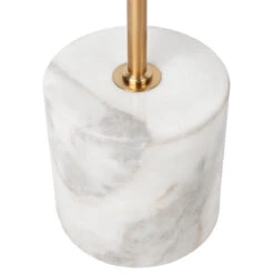 Cast a soothing glow, with the Waverly Marble Floor Lamp. Paying homage to mid-century design with an understated sleek brass rod accented by white and grey veined marble. Complete with a smooth off-white tapered shade and rolled edge.