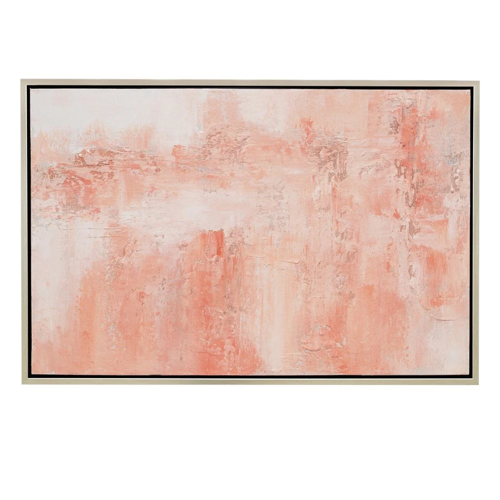 Yesterday Canvas Painting expertly blends a gentle palette of earth inspired hues in a beautifully serene abstract composition. A dreamy blush pink background gives way to subtle tones of peach and dessert flower pantones in an attractive arrangement of tone and texture. Awash in an ethereal white, this 100% hand painted Canvas sits pretty at 120 x80cm and is finished in an elegant antique silver shadow box frame.