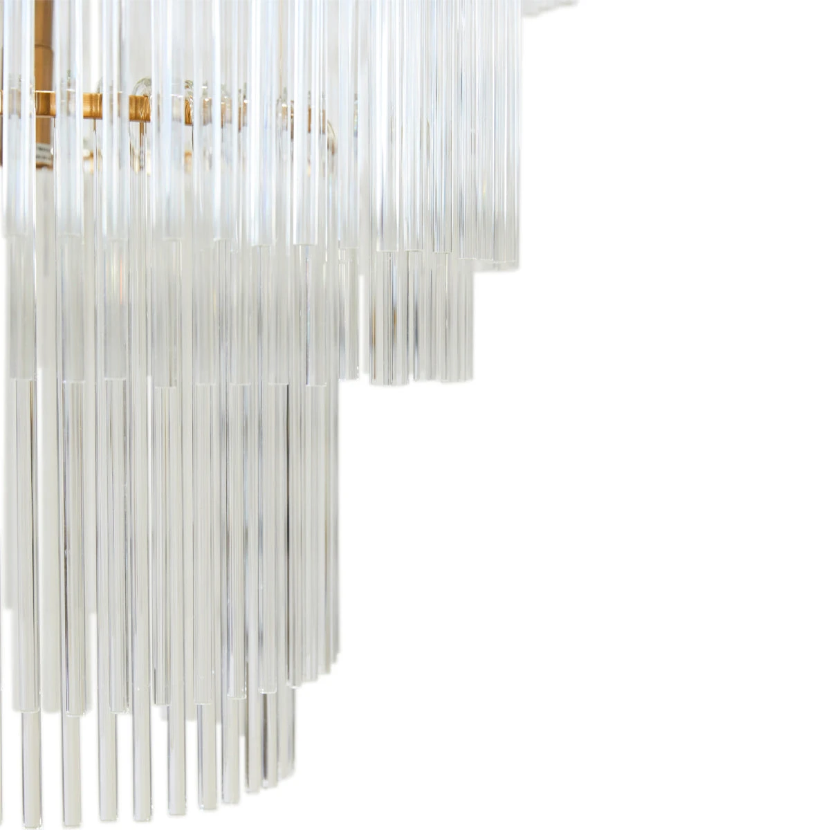 The Art Deco style born in 1920s is evident in the delicate elegance of our Zara Pendant collection. Hand-made crystal rods drape effortlessly over a plated brass frame, hanging in modest harmony. A large-scale take on the popular Zara pendant commands a space with a balance between exceptional class and oversized drama.