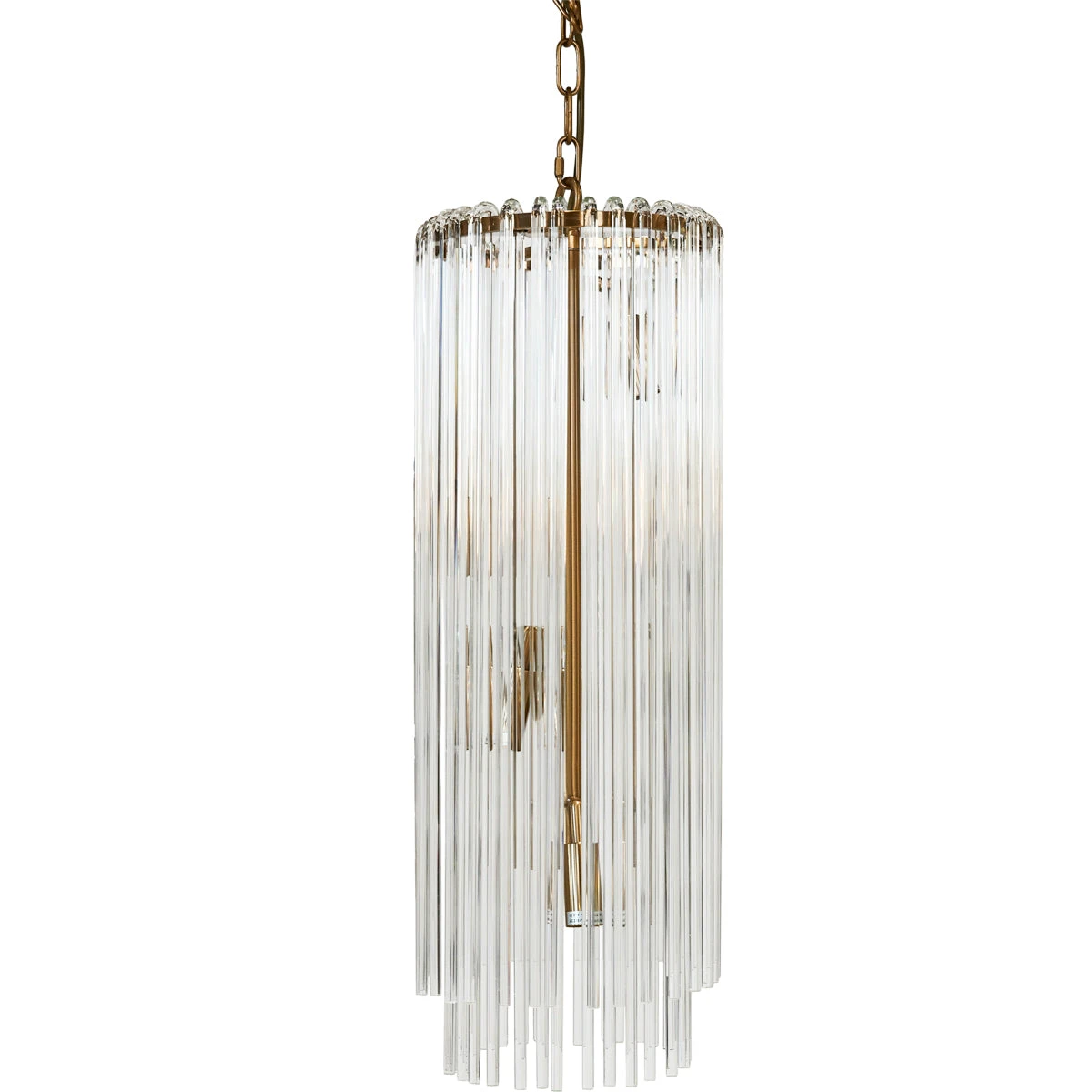 The Art Deco style born in 1920s is evident in the delicate elegance of our Zara Pendant collection. Hand-made crystal rods drape effortlessly over a plated brass frame, hanging in modest harmony. A scaled down and slender take on the popular Zara pendant exudes exceptional class, providing a dramatic play of light and softly diffused glow